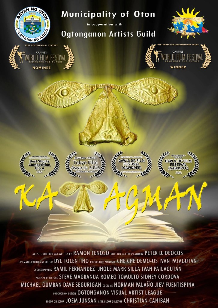 Peter D. Deocos played a vital role in co-directing, choreography and acting. British-Filipino director Ramon (Chie) Tenoso says: “Katagman” stands out for one simple reason: it is a colourful story, told by the locals and produced by Ogtonganons themselves! It an homage from our hearts to this amazing Province Iloilo.”